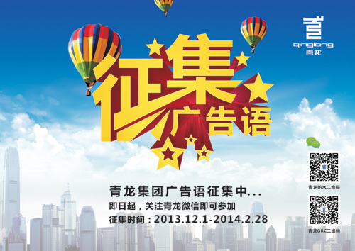 現(xiàn)為了使各地代理商、消費者及社會公眾更加容易理解青龍集團的環(huán)保節(jié)能、社會責任、誠實守信等文化涵義,建立青龍集團全新品牌形象,現(xiàn)向社會各界征集集團廣告語。歡迎社會各界踴躍參與。